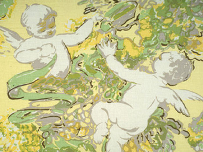 The “San Simeon Brocatelle” led to other commissions for William Randolph Hearst, such as the “Cherub Print” that was designed by Franco’s daughter, Adriana, when she was only twelve. The “Cherub Print” was made into slipcovers for the sofas and chairs in the Assembly Room at San Simeon.