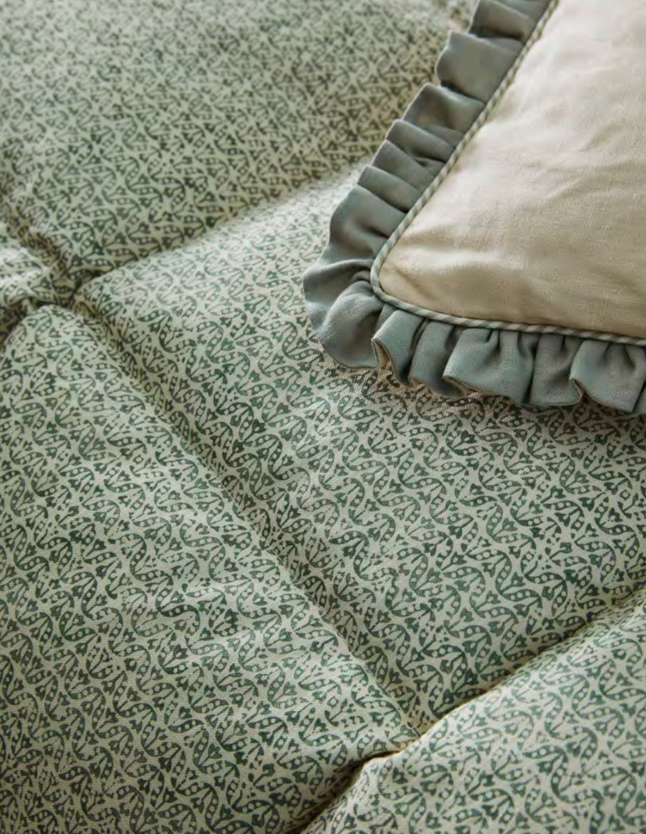 Roman Shade: Flori. Duvet: Flori. Pillows: Elizabeth and Lismore Linen.