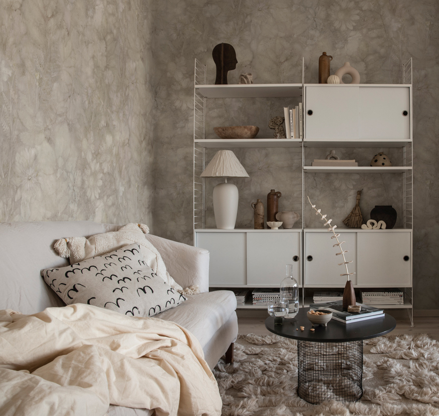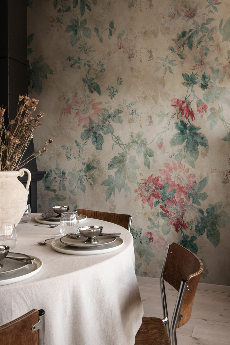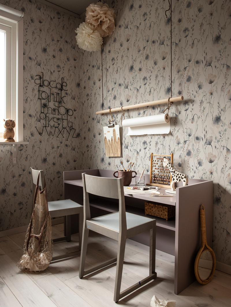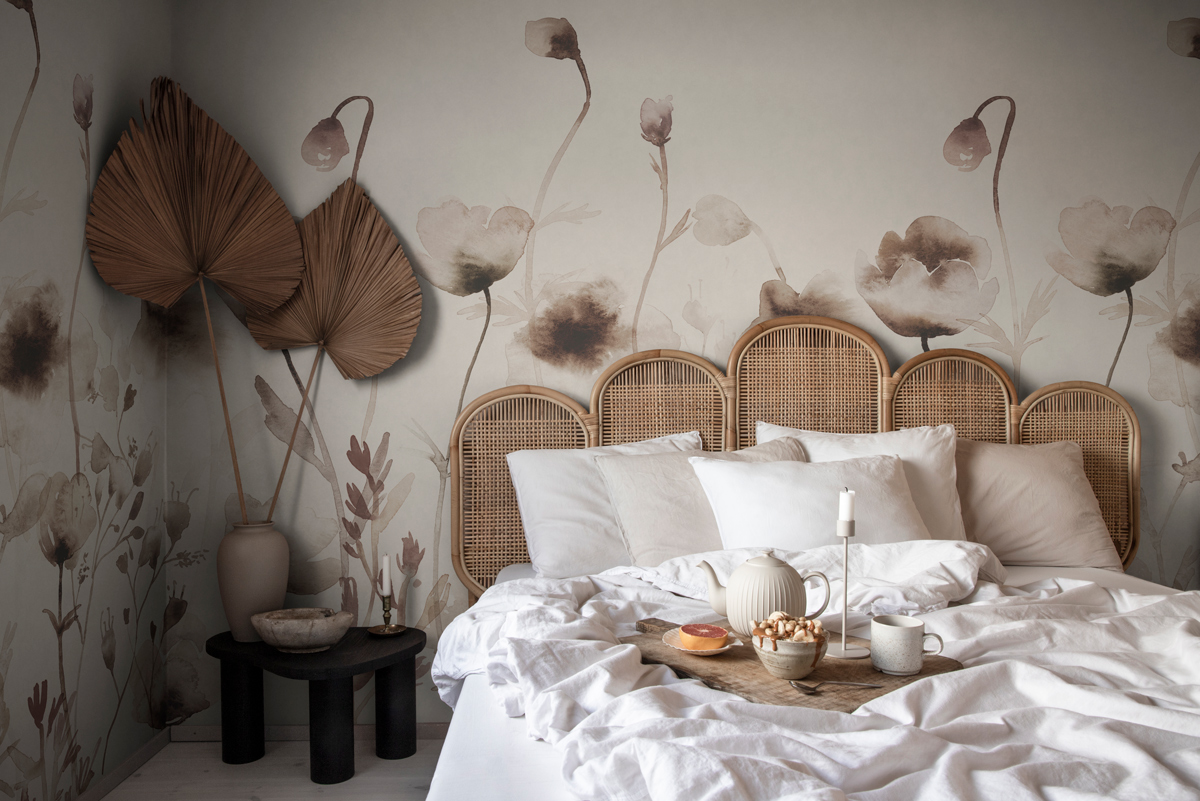 With its soothing watercolors, beautiful poppies, and delicate twigs, Lo gives walls a vibrant, modern mood.