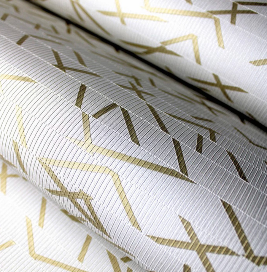 Metallic lines intertwine to create a structure composed of organic shapes in this contemporary wallcovering motif. Neutral hues contoured by gilded lines create a beautiful sense of movement on the wall.